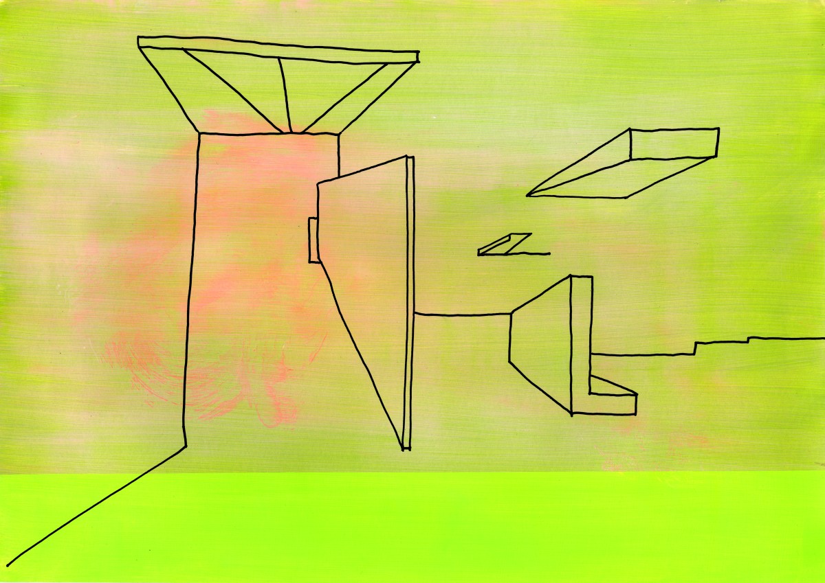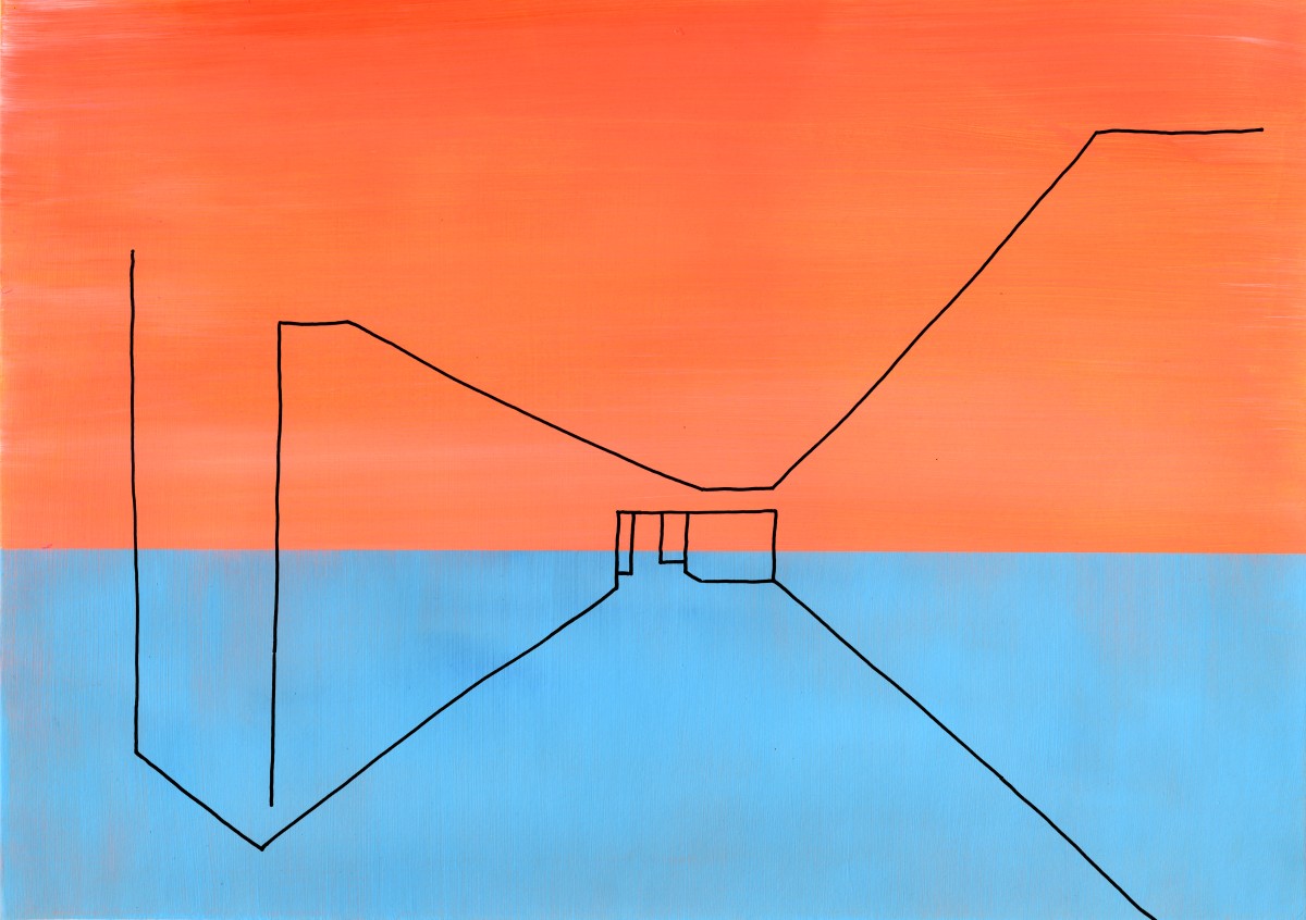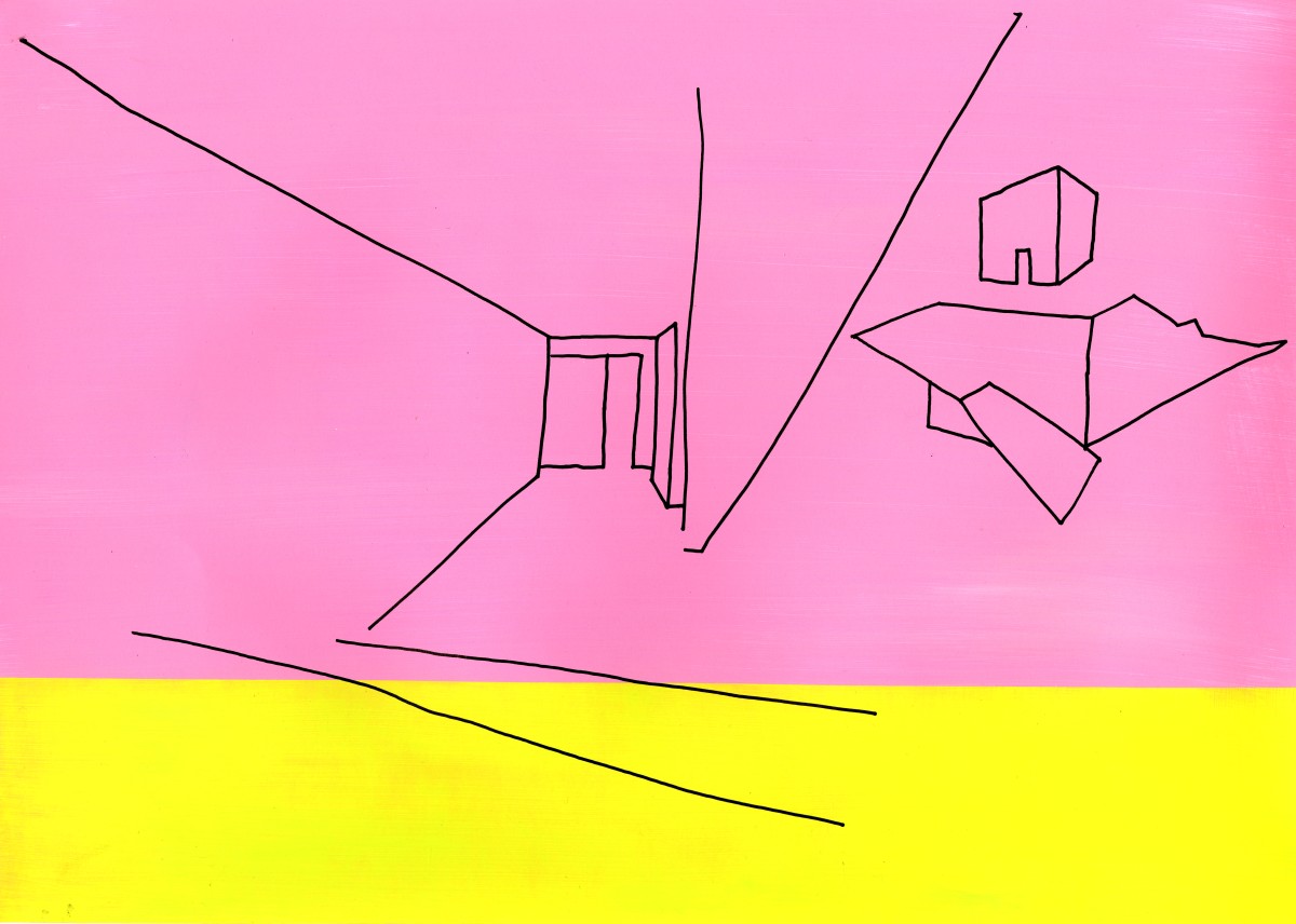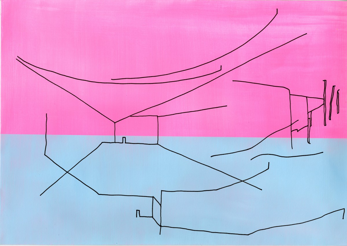 Des lignes se dessinent, s’architecturent, se prolongent puis s’interrompent. Le vide agencé sur le papier ouvre l’espace comme une invitation à s’y projeter pouvant faire émerger ses propres images de paysages ou du bâti. Une manière de rappeler les souvenirs des espaces traversés, perçus et observés. Lorsque je me déplace, d’espace en espace, physique et mental, j’aimerais comprendre ces déplacements, ce que je regarde et ce qui se conserve car à l’intérieur de moi, un réceptacle d’expériences toutes reliées à des lieux s’aménage. Dans la mémoire, les images des espaces se démultiplient, s’enchevêtrent et finissent par se brouiller, menaçant de disparaître ou de s’effacer par excès. En réponse à la surabondance, dessiner révèlece qui a été perçu. Dans ce sens, mes dessins sont des approches du réel fixées sur le papier mais qui surtout ne disent pas tout. C’est pourquoi les lignes sont claires et minimales, jointes ou disjointes mais issues de sensations vécues par le corps. La main trace mais ce qui se dessine n’est pas la reproduction exacte de la réalité ou de son image mentale mais en parle comme d’un lien qui se conscientise. Pour souligner les qualités spatiales des endroits considérés, la ligne entre en coexistence avec un espace chromatique préalablement peint où des relations se composent comme des fréquences suscitant des ouvertures possibles de la perception.