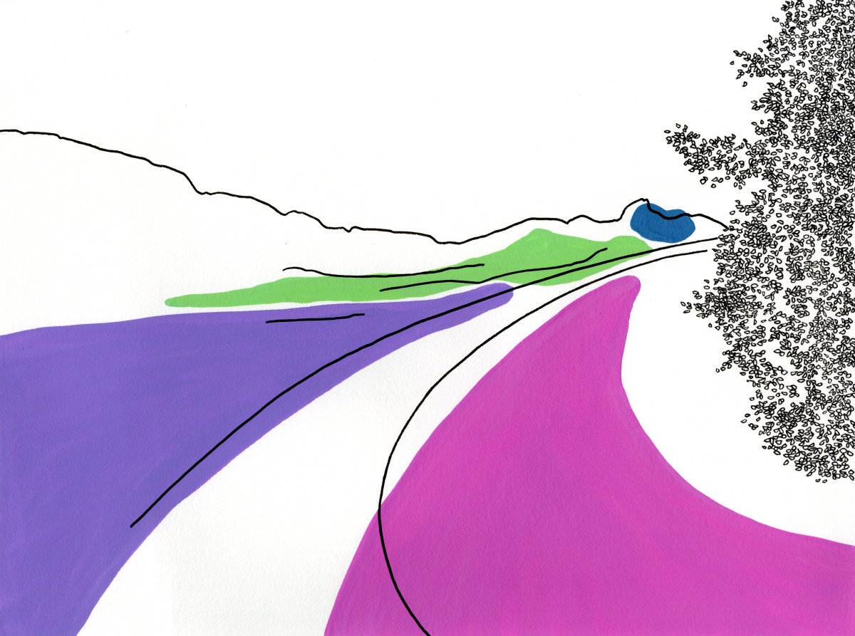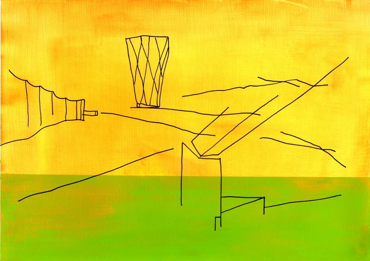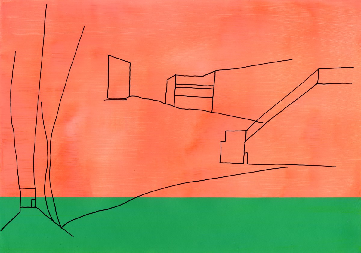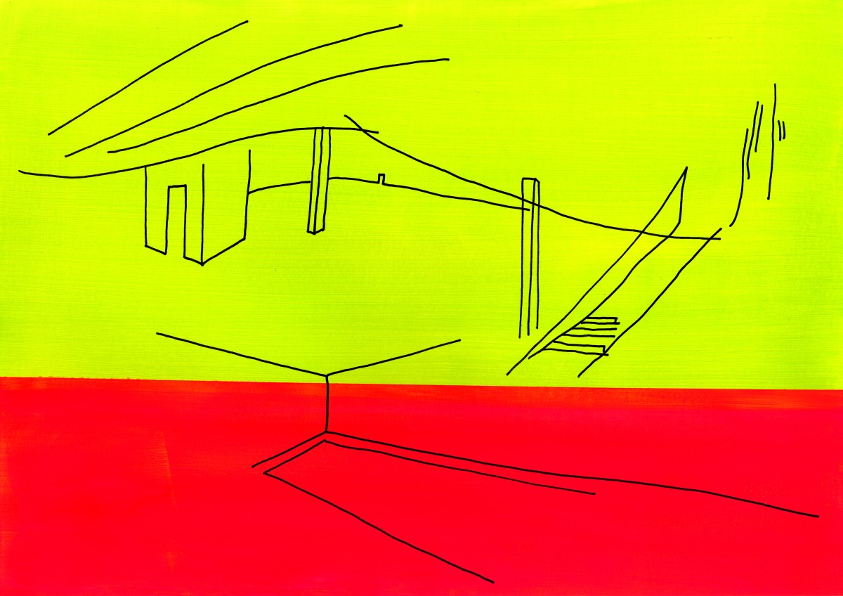 Des lignes se dessinent, s’architecturent, se prolongent puis s’interrompent. Le vide agencé sur le papier ouvre l’espace comme une invitation à s’y projeter pouvant faire émerger ses propres images de paysages ou du bâti. Une manière de rappeler les souvenirs des espaces traversés, perçus et observés. Lorsque je me déplace, d’espace en espace, physique et mental, j’aimerais comprendre ces déplacements, ce que je regarde et ce qui se conserve car à l’intérieur de moi, un réceptacle d’expériences toutes reliées à des lieux s’aménage. Dans la mémoire, les images des espaces se démultiplient, s’enchevêtrent et finissent par se brouiller, menaçant de disparaître ou de s’effacer par excès. En réponse à la surabondance, dessiner révèlece qui a été perçu. Dans ce sens, mes dessins sont des approches du réel fixées sur le papier mais qui surtout ne disent pas tout. C’est pourquoi les lignes sont claires et minimales, jointes ou disjointes mais issues de sensations vécues par le corps. La main trace mais ce qui se dessine n’est pas la reproduction exacte de la réalité ou de son image mentale mais en parle comme d’un lien qui se conscientise. Pour souligner les qualités spatiales des endroits considérés, la ligne entre en coexistence avec un espace chromatique préalablement peint où des relations se composent comme des fréquences suscitant des ouvertures possibles de la perception.